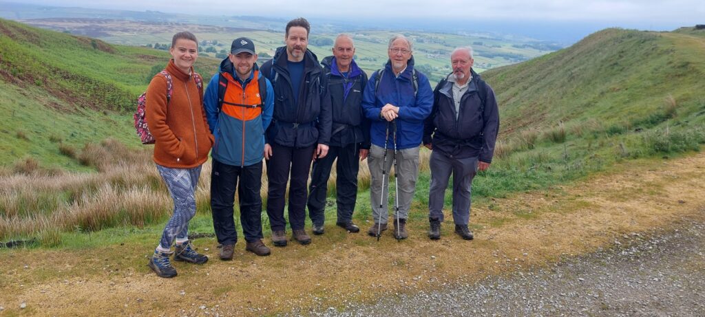 A new route suggested by Brian made possible by Heather offering to drive us to the start at Worsthore. Set off at approx 11:00am on what was one of the hottest days of the year, witnessed by all the sweat stains on our shirts in the photos. The walk started with a steady climb up to 1379 ft overlooking Gorple Reservoirs with tremendous views across the hills. Continued from there to Widdop Res and then along the road to the Pack Horse for a well earned pint. From there it was a steep climb to 1200 feet from the hairpin bends and back onto the Pennine Bridleway for a short distance before descending to the New Delight Pub to replace the fluids we had lost. We then took the usual path above Hardcastle Craigs to the bus stop at Fox and Goose. Unfortunately due to the tardiness of our walking speed it was too late for a pint as we had to catch the bus for a Curry at the Bay of Bengal in Littleborough.