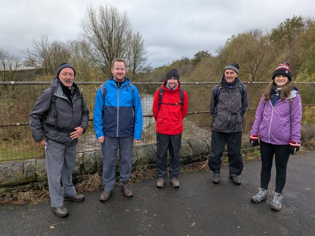 A new route for the walking group for a change. Fortunately we ignored the weather forecast of high winds and rain as Storm Claudia had passed through leaving a fine grey day. Started in Bury and followed the Kirklees trail which is basically the remaining track bed of the Bury to Holcombe Brook railway, so good underfoot and well walked. This was opened in 1882 as a steam line but converted in 1913 to Electric with 8 stations between Bury and Holcombe Brook. Continued as an Electric line until 1951 when the equipment was worn out and steam was reintroduced before the line shut completely in 1963. That’s the end of the history lesson. Stopped near the end of the trail for our customary pork pie and coffee before continuing into Summerseat were we stopped at the welcoming Footballers Arms for lunch. Great pub. From there it was over the East Lanc’s railway line and down to join the Irwell Valley sculpture trail. On route Rebecca took an excellent video of a passing steam train but missed the guy taking his canoe over the weir. We enjoyed the luxury of a second stop in Burns park at the Brown Cow a busy pub of character serving traditional English meals and numerous cask beers. As evening was approaching we reluctantly left that pub for the final part of the walk into Bury finishing at the Art Picture House, a Wetherspoons pub, whilst we waited for the bus back to Rochdale. Concluded the day with a delicious curry at the Pavilion Restaurant Spotland Bridge.
